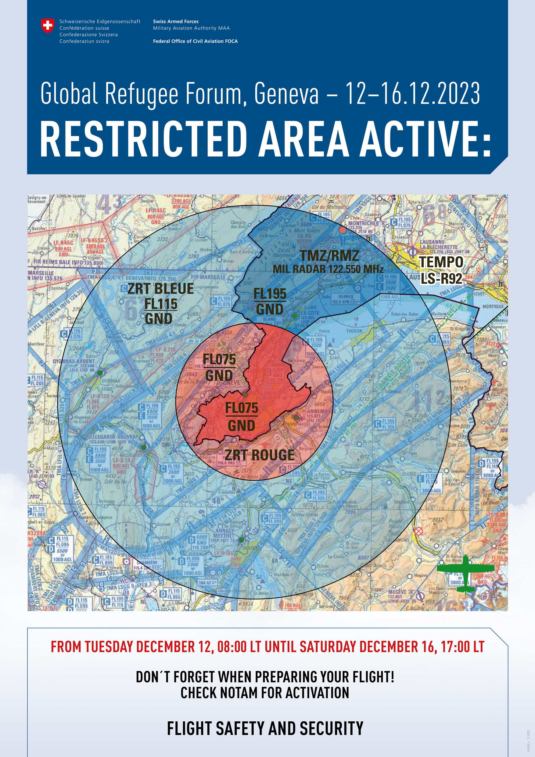 Forum mondial des réfugiés 2023 à Genève : restriction temporaire de l’espace aérien